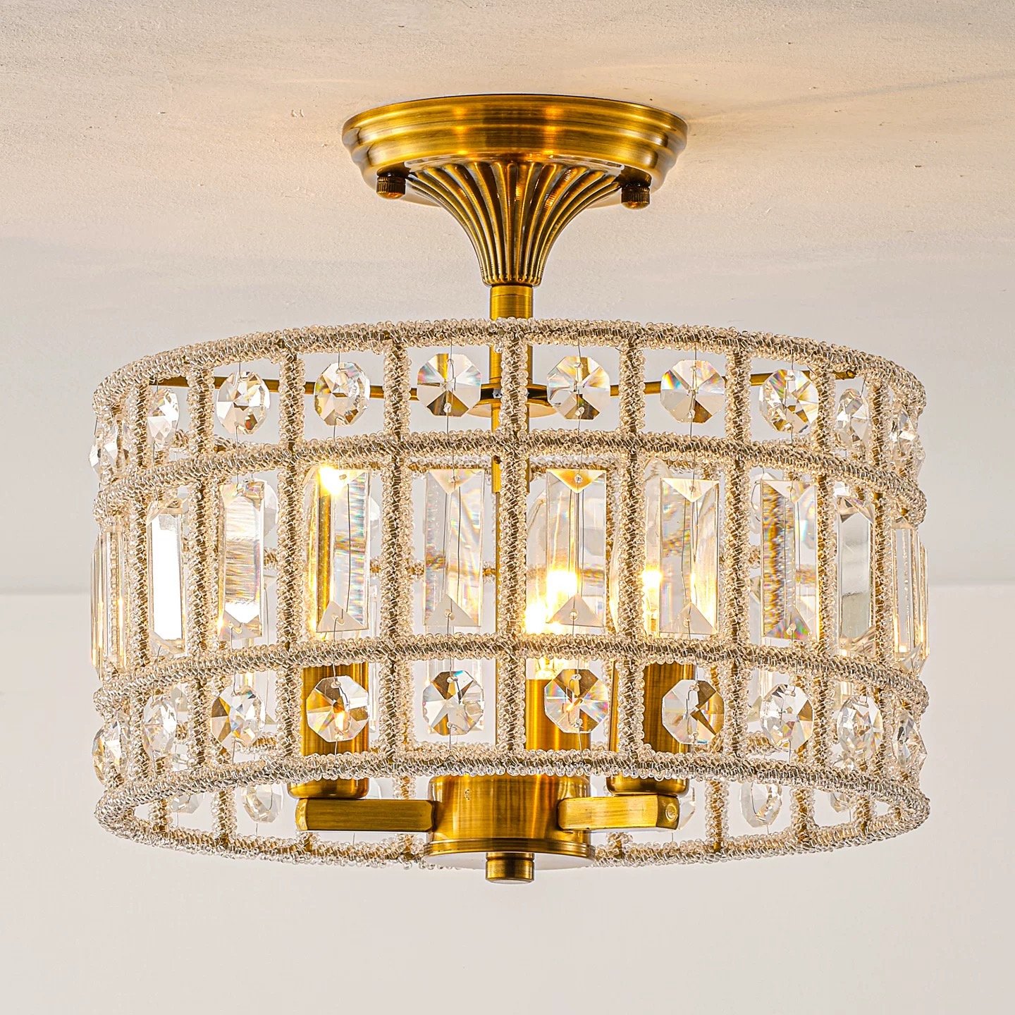 American Retro Gold Foil Semi-Flush Mount Ceiling Light