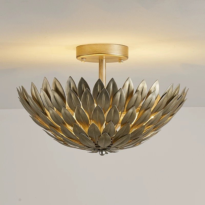Vintage Leaf Chandelier Ceiling Light | Antique Gold Floral Semi-Flush Mount for Living Room