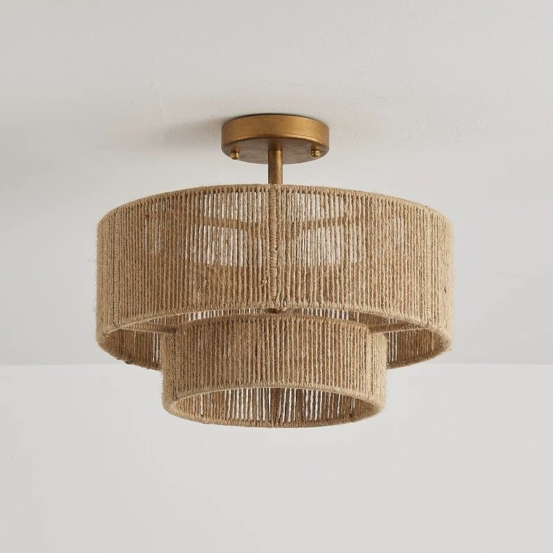 Handcrafted Natural Raffia Ceiling Lamp | Bohemian & American Rustic Lighting for Bedroom & Living Room