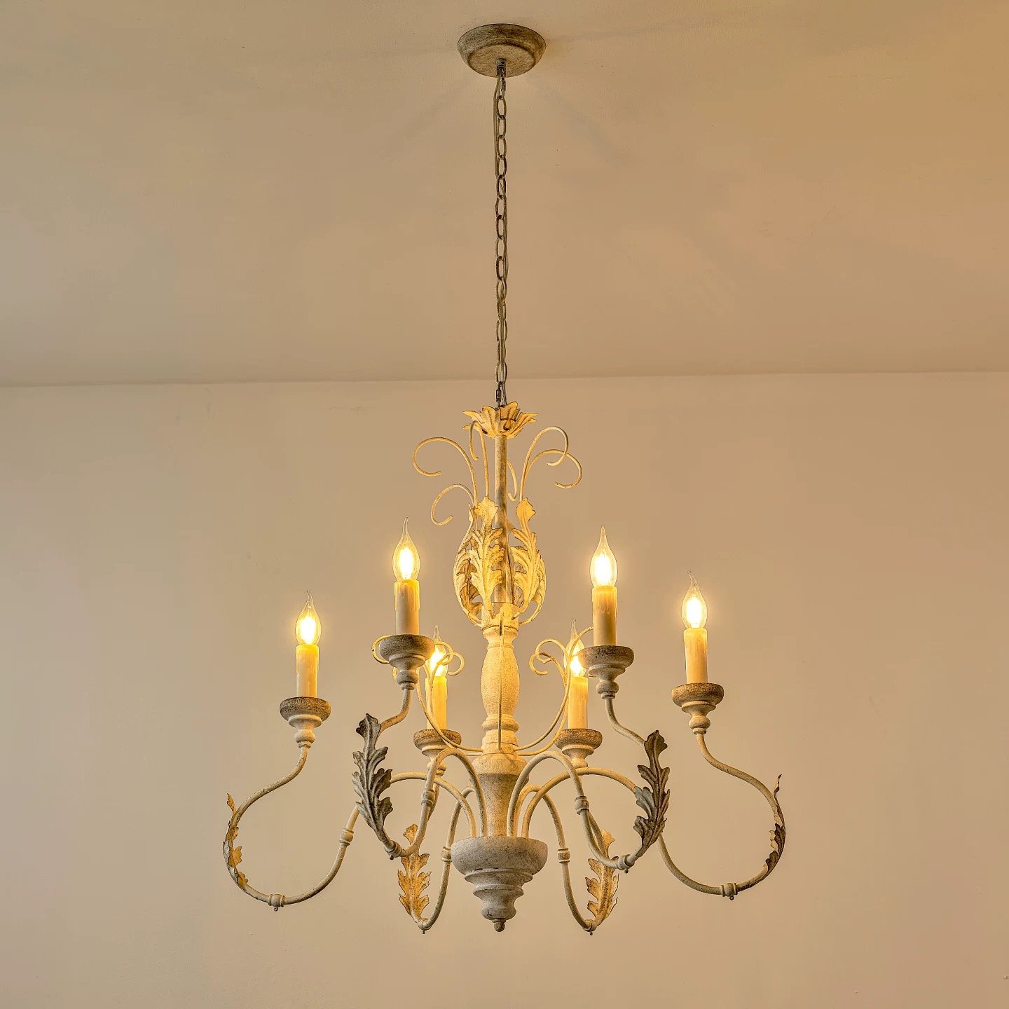 French Country Distressed Wood Chandelier, 6-Light Vintage Candle Chandelier for Living Room, Dining Room
