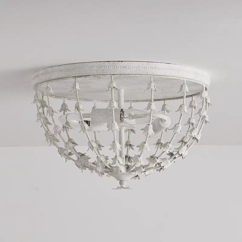 White Lily of the Valley Flush Mount Ceiling Light | French Vintage Chandelier for Bedroom & Hallway