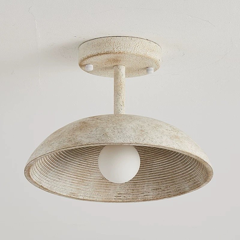 Vintage textured stone semi-flush ceiling light. Slim profile, warm ambient glow. Perfect for entryways, hallways, balconies
