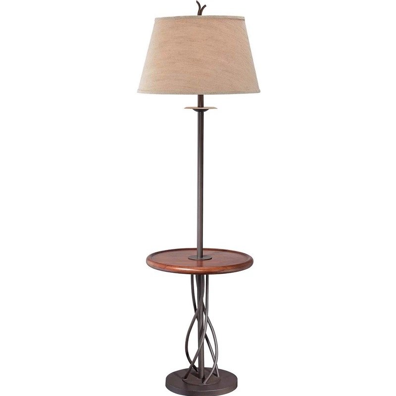 Rustic Vintage Floor Lamp with Built-in Side Table – American Farmhouse Style for Living Room & Bedroom
