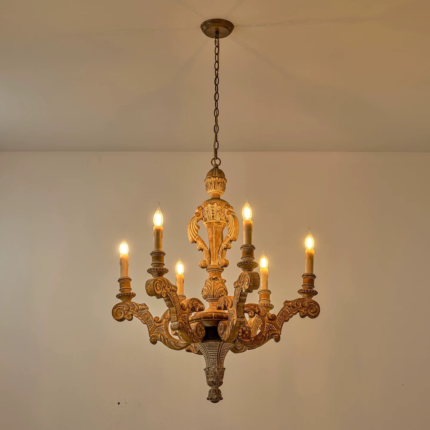 French Vintage Wooden Chandelier, Baroque Carved Pendant Light for Villa, B&B, Living Room & Dining Room