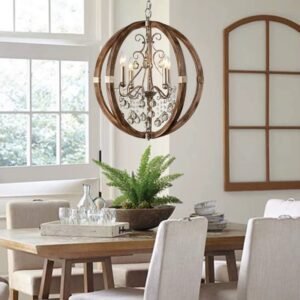 American Rustic Wood Globe Chandelier | Vintage Pendant Light for Dining Room & Living Room