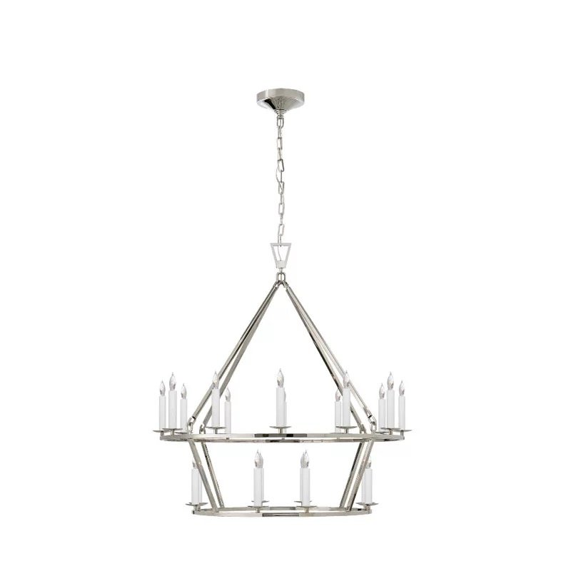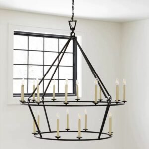 Grand 2-tier circular pyramid design, made for high-ceiling villas and grand living spaces.Available in antique gold, matte black, and polished silver finishes to match any decor style.20+ candle-style light heads provide ample, warm illumination for large open areas.