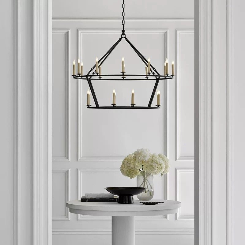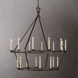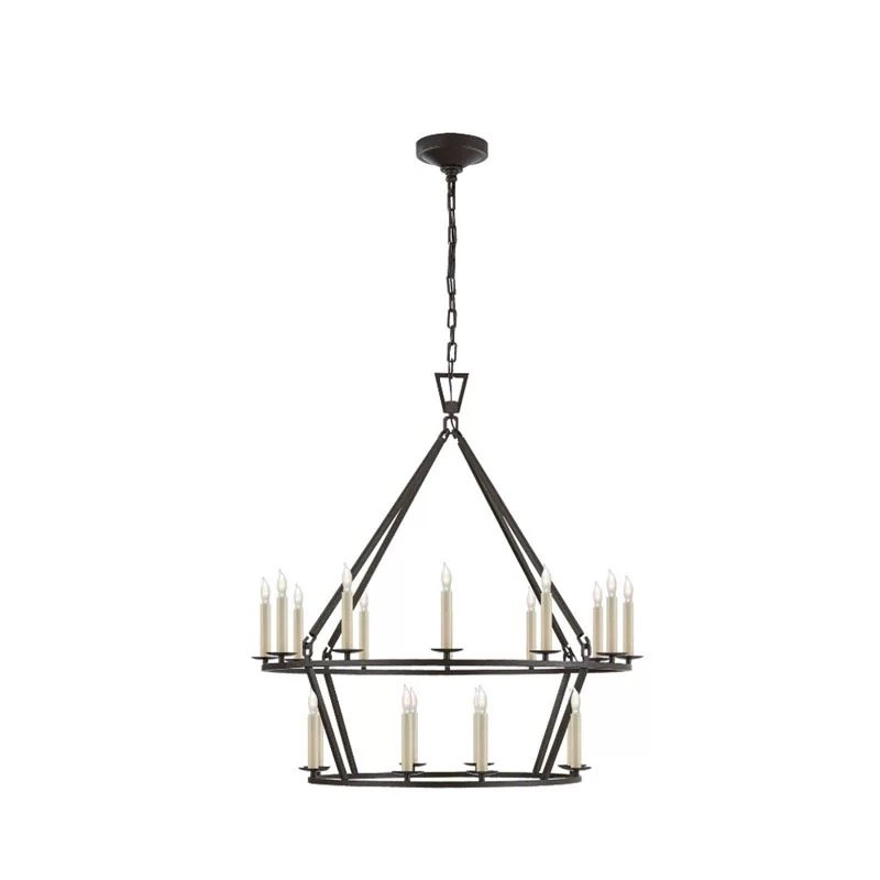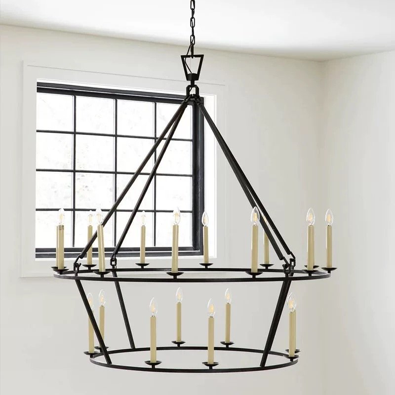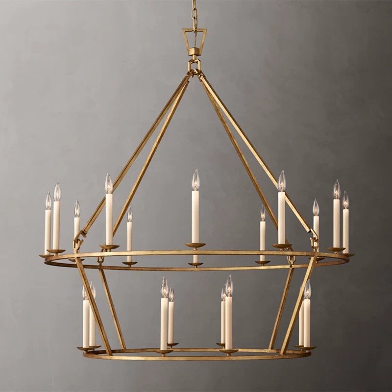 American Vintage 2-Tier Geometric Chandelier | Large Pendant Light for High-Ceiling Villas & Living Rooms