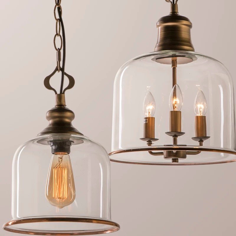 Elevate your home with our vintage bell jar glass pendant light. Featuring antique brass finish and clear glass, it casts warm glow for kitchen islands, dining rooms, and cozy bedrooms. Shop now for timeless farmhouse charm