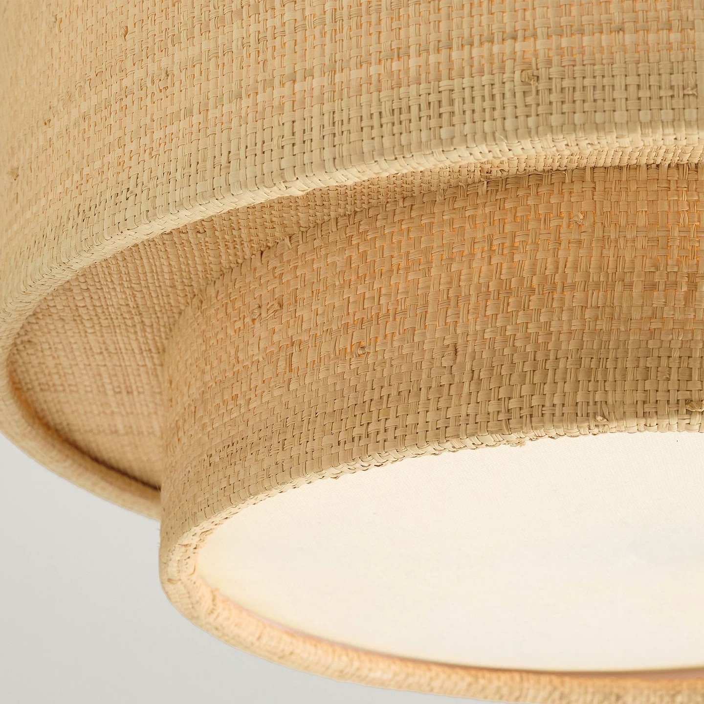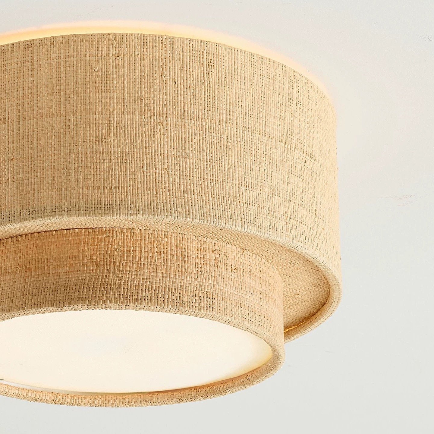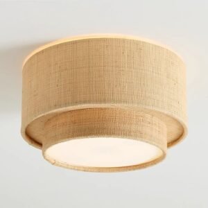 Elevate your space with our handwoven raffia flush mount ceiling light. Featuring a 2-tier natural woven design and warm ambient glow, this boho mid-century modern ceiling lamp adds timeless luxury to bedroom, entryway, hallway, and bathroom.