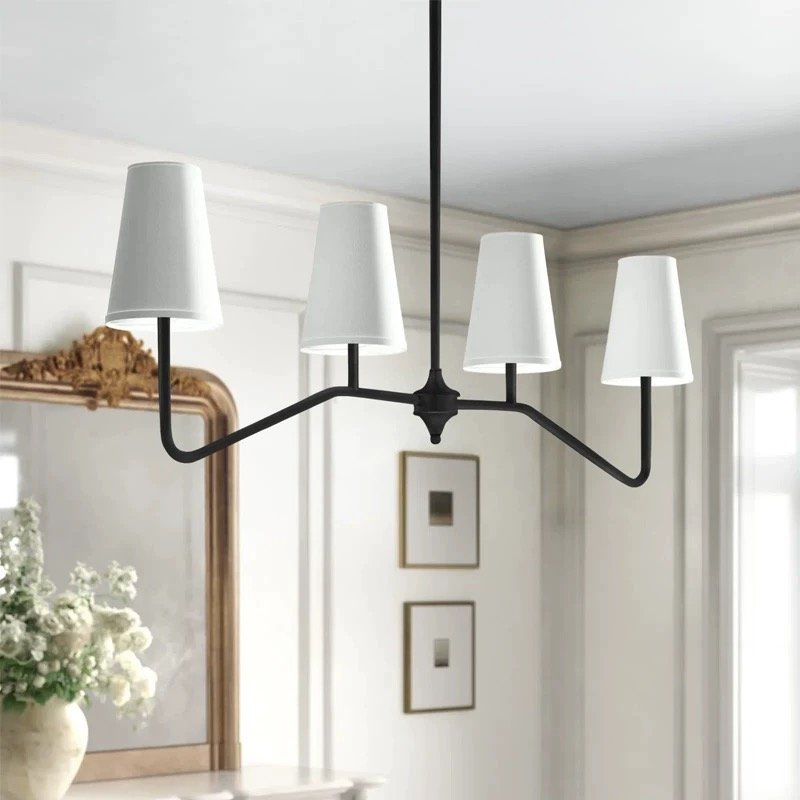Material: Iron + linen lampshade Size(MM):L1000*H330 Lamp Base: E12*4 Usage: Simple & Dry Indoor Areas Warranty: 5-Year Warranty Contact Us:+8615099891132