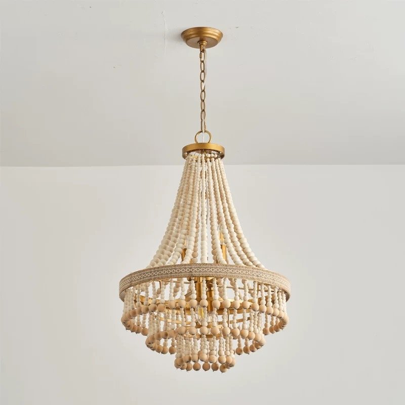 Our French bohemian wooden bead chandelier blends rustic American style with timeless French elegance, making it the perfect statement piece for your loft, living room, dining area, or bedroom.Choose from three versatile sizes to fit your space: