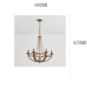 Material: Solid wood+ iron Size(MM):D660*H670 Lamp Base: E12*6 Usage: Simple & Dry Indoor Areas Warranty: 5-Year Warranty Contact Us:+8615099891132
