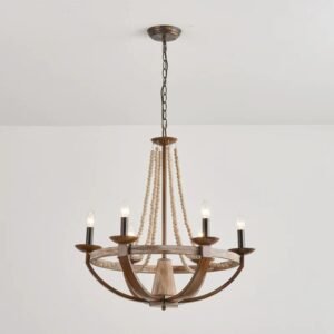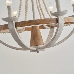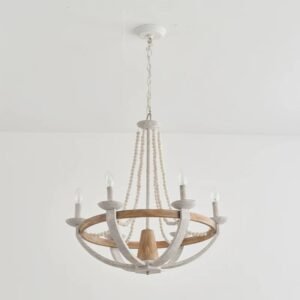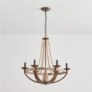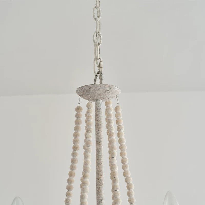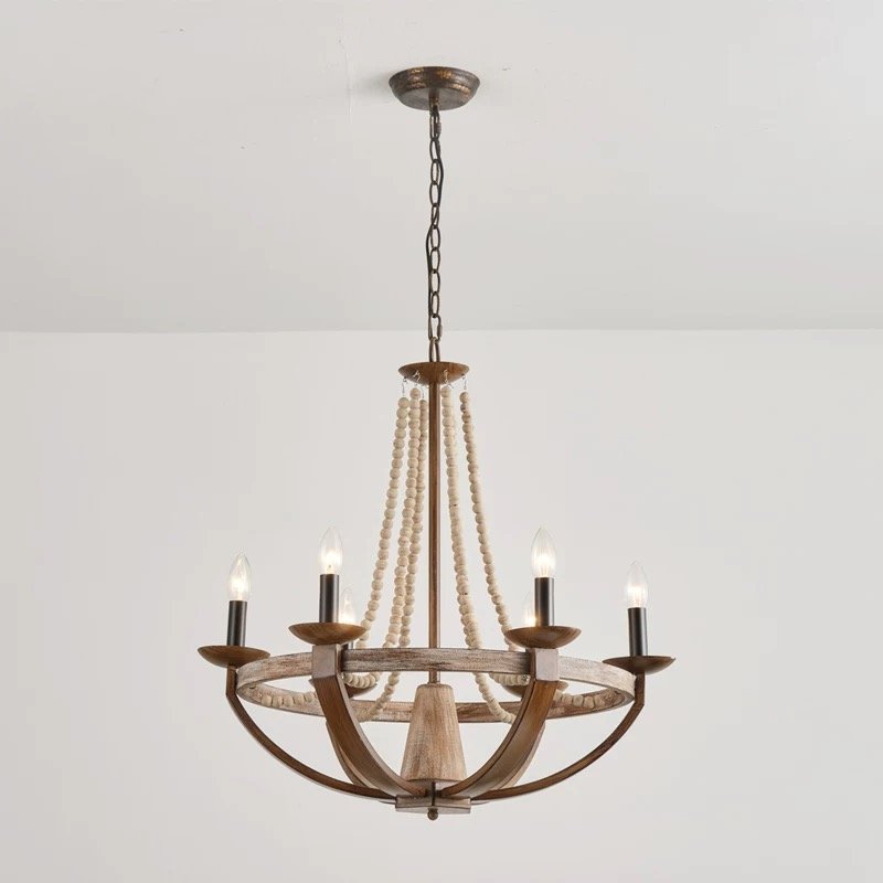 French Country & Rustic Farmhouse Wood Beaded Chandelier – 66cm