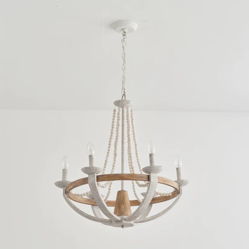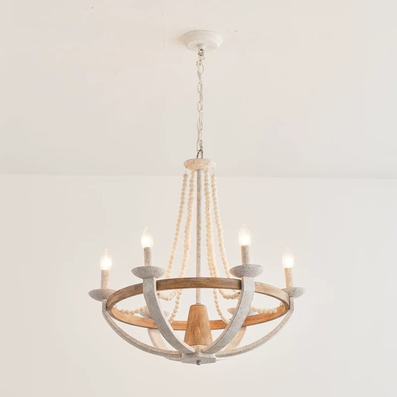 Elevate your home with our 66cm French Country Rustic Chandelier, a perfect blend of vintage charm and modern farmhouse style. Crafted with natural wood, distressed metal finishes, and delicate wooden bead strands, this chandelier brings warm, inviting light to your living room, dining area, or master bedroom. Ideal for loft apartments, villas, and open-concept spaces, it seamlessly merges French provincial elegance with American rustic aesthetics.