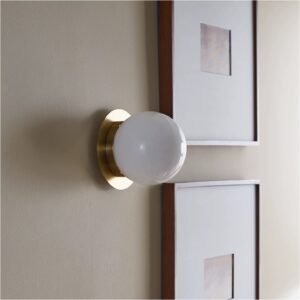 Elevate your space with our minimalist brass globe wall sconce. Featuring frosted opal glass and brushed brass finish, this mid-century modern wall light adds timeless elegance to bedroom, bathroom, living room. Perfect for headboard, vanity, and accent lighting.
