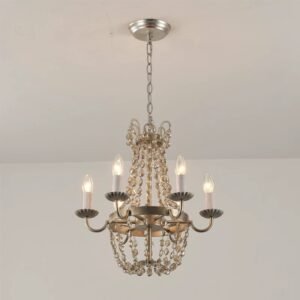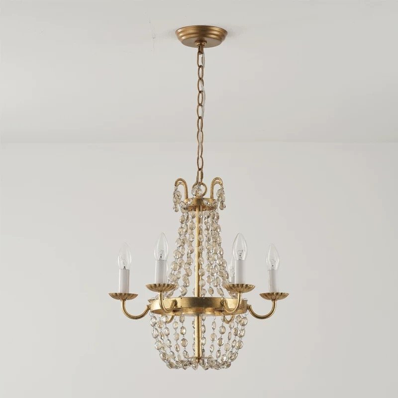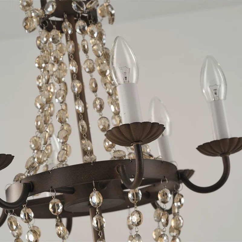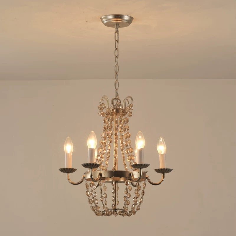 This 42cm vintage crystal chandelier blends American rustic charm with French romantic elegance, featuring three finish options (antique gold, silver, bronze) to elevate your dining room, bedroom, or entryway. Crafted with distressed metal frames and cascading clear crystal strands, it casts warm, dappled light that transforms any space into a cozy, timeless retreat. Ideal for farmhouse, cottage, or classic interiors, this designer fixture adds a touch of old-world luxury to your home.