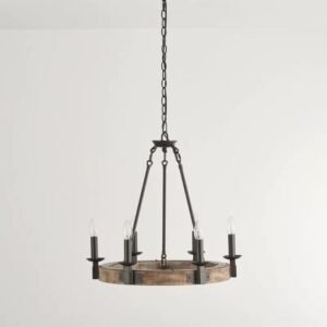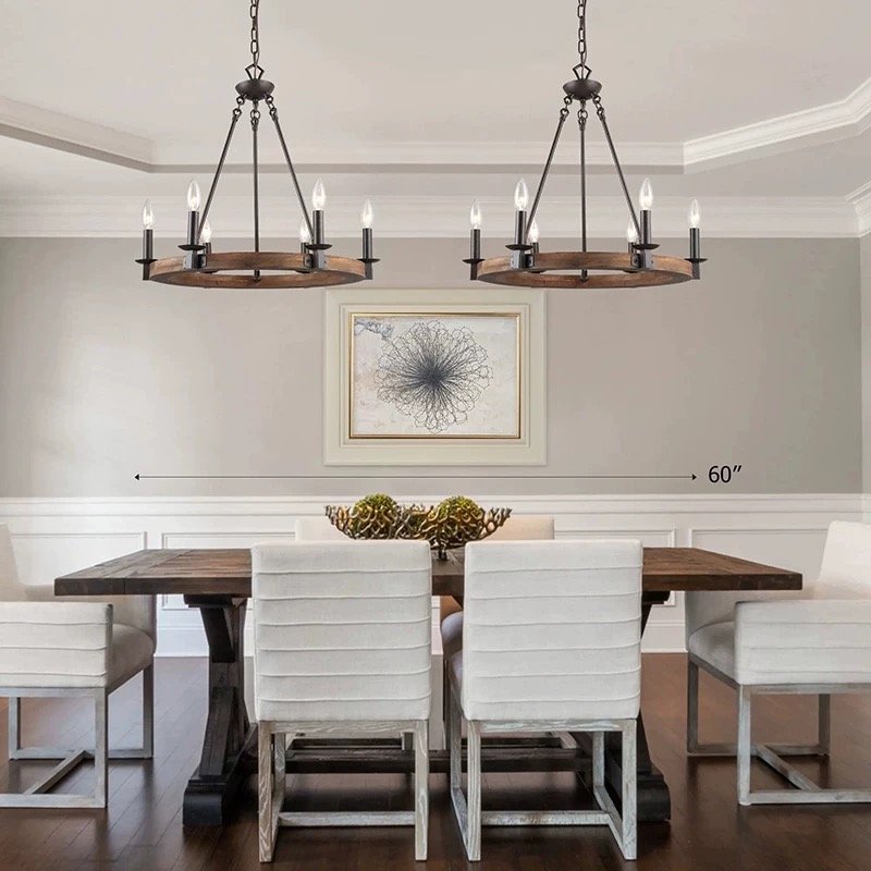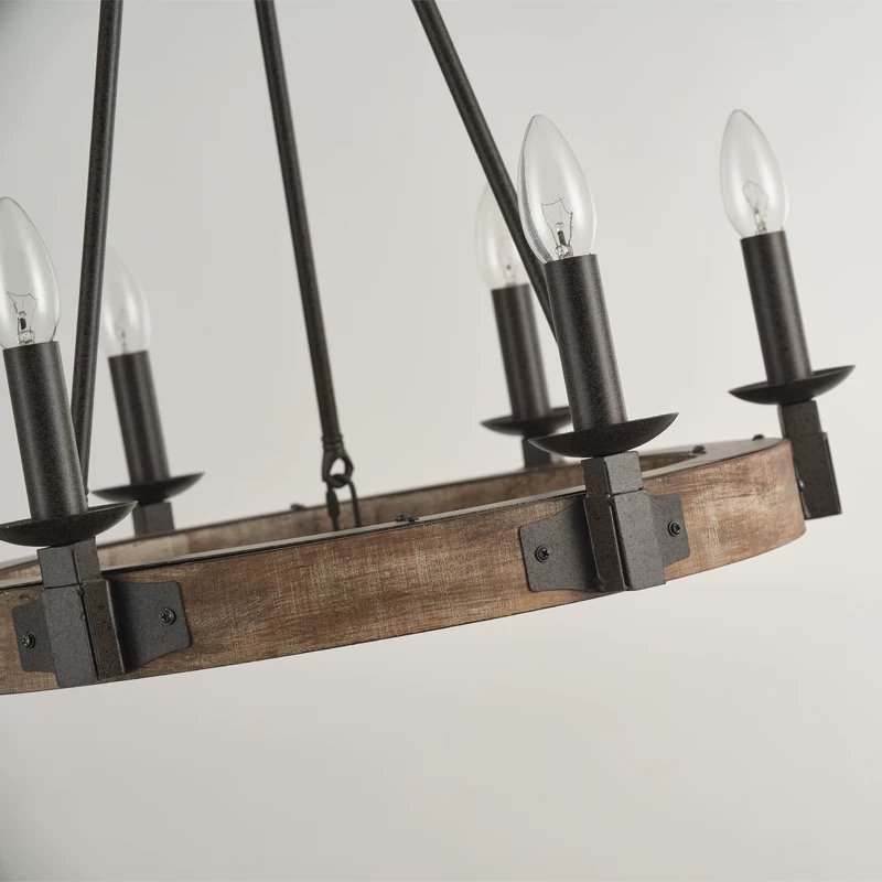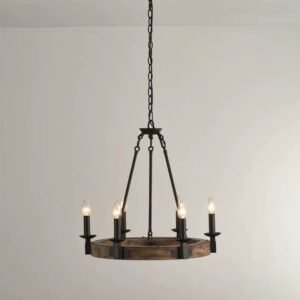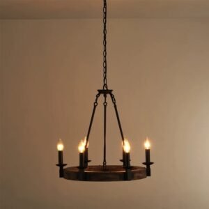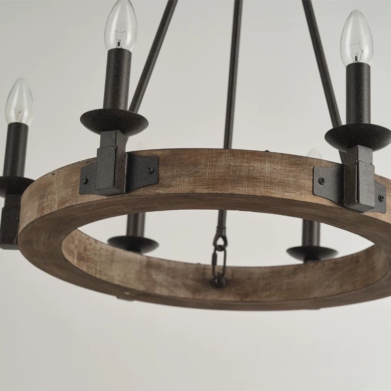 Our wood ring chandelier is a love letter to classic American farmhouse design. We’ve paired a hand-distressed solid wood ring with rugged black metal hardware to create a piece that feels both vintage and contemporary. It’s not just lighting—it’s a statement of warmth, character, and intentional living.