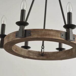 Rustic Wood Ring Chandelier | American Farmhouse Pendant Light for Living Room, Dining & Bedroom