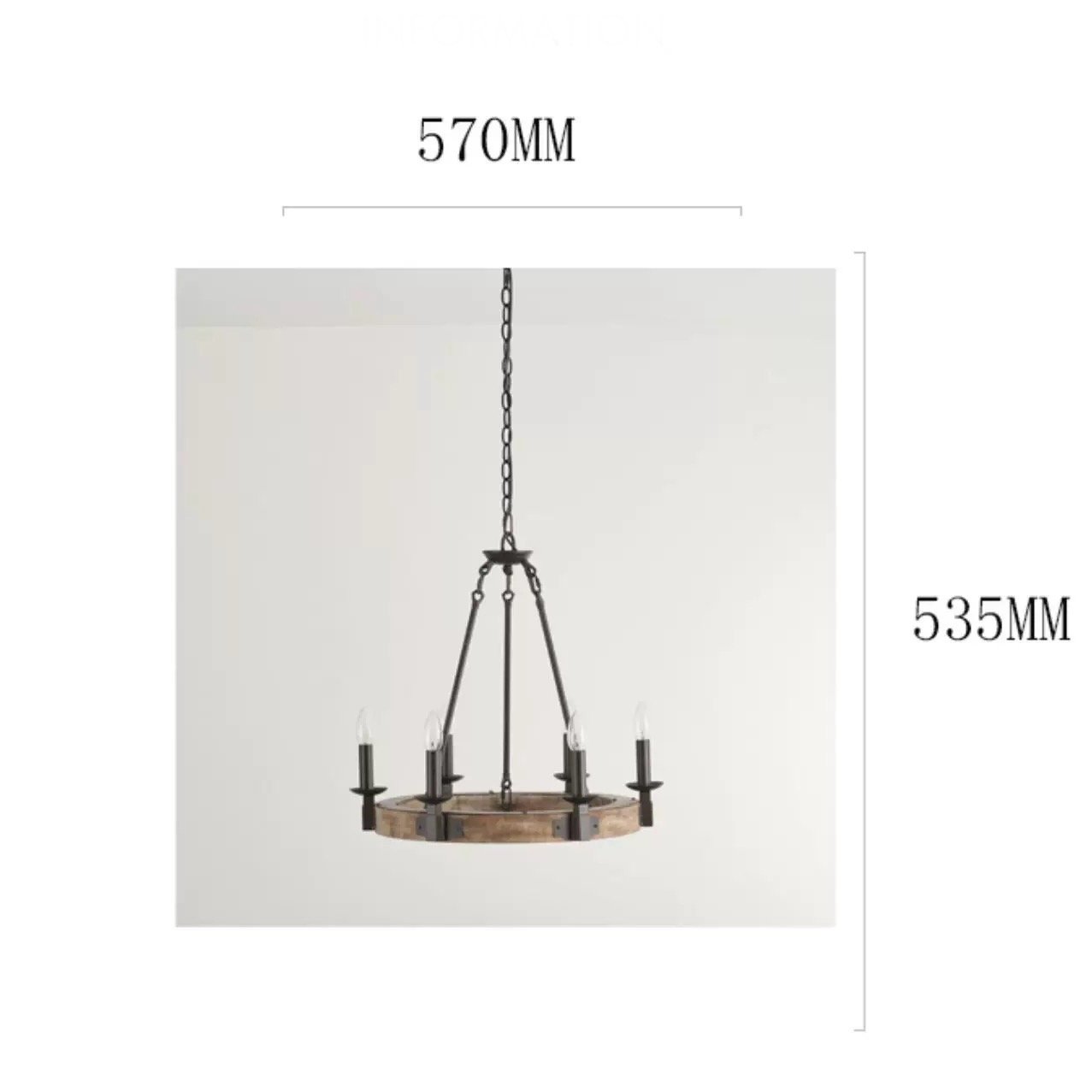 Material: Solid wood + iron Size(MM):D570*H535 Lamp Base: E12*6 Usage: Simple & Dry Indoor Areas Warranty: 5-Year Warranty Contact Us:+8615099891132