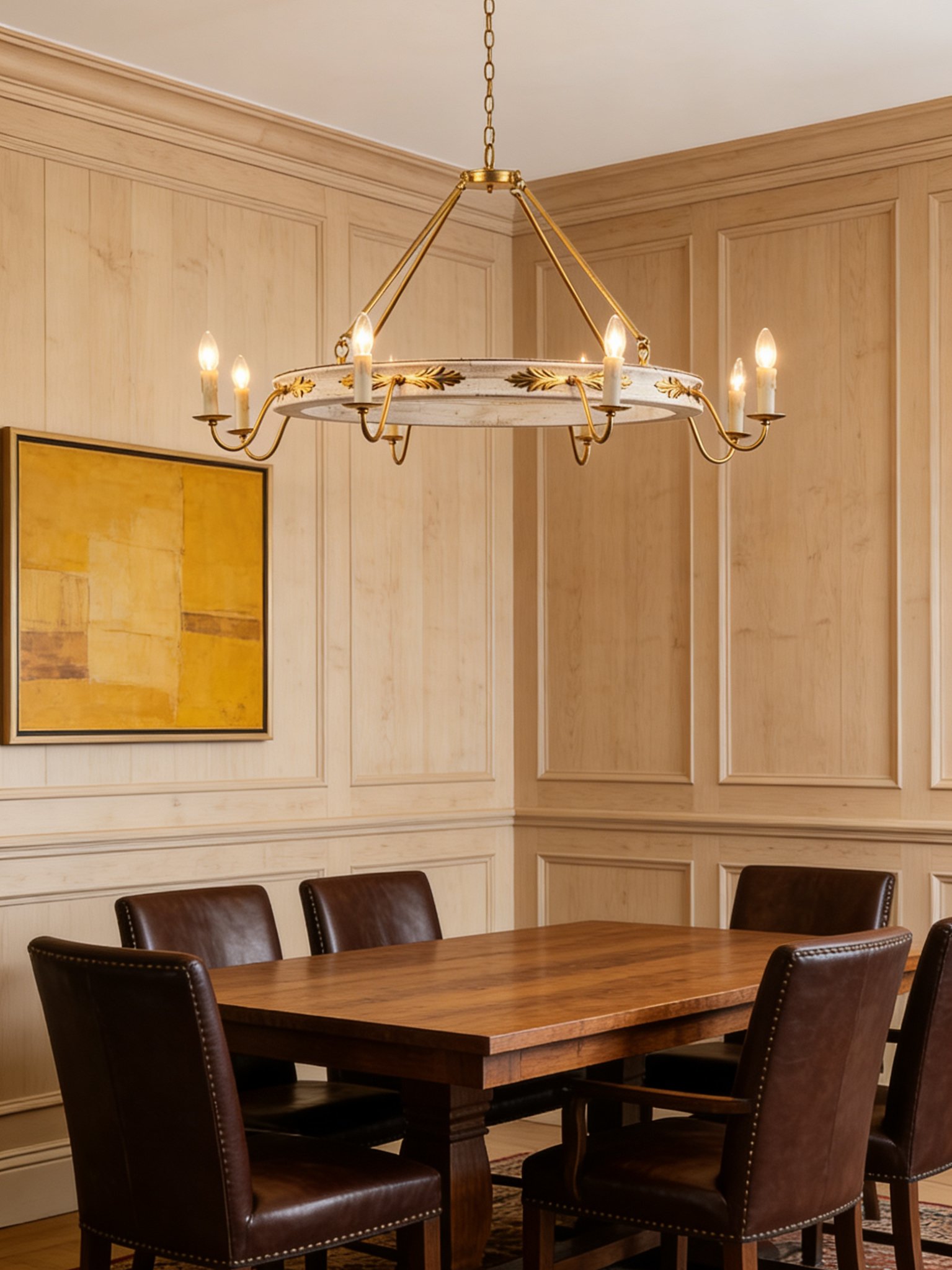 More than just a light fixture, this statement piece is a masterpiece of craftsmanship, blending natural wood elements with ornate metal details to create a look that is both timeless and deeply personal. Whether your space is a sprawling villa, a cozy family dining room, a charming boutique hotel, or a rustic, this chandelier serves as the focal point that ties your entire design scheme together.