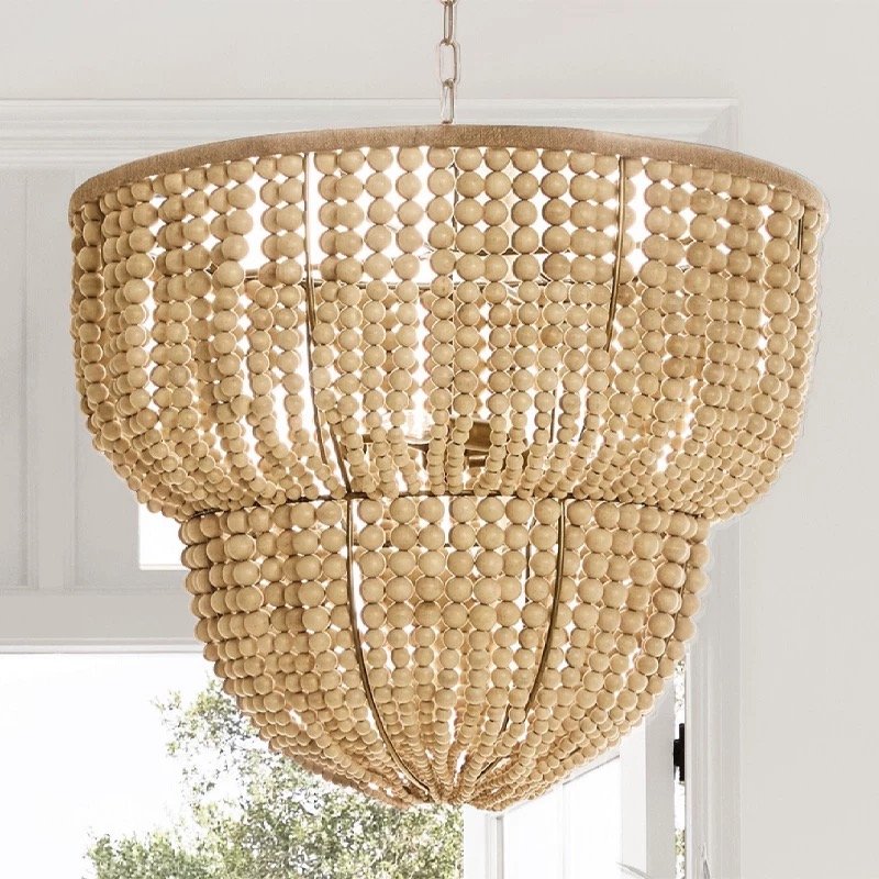 Two-Tier Wooden Bead Chandelier | Boho Rustic Pendant Light