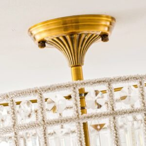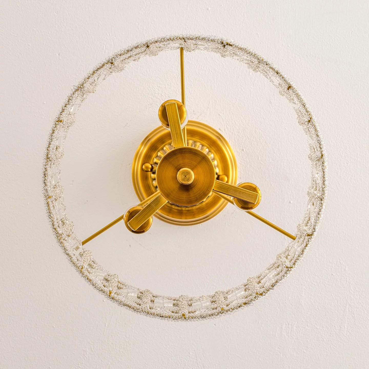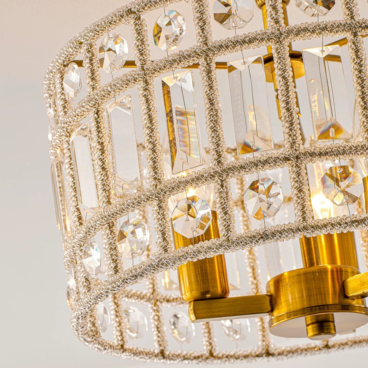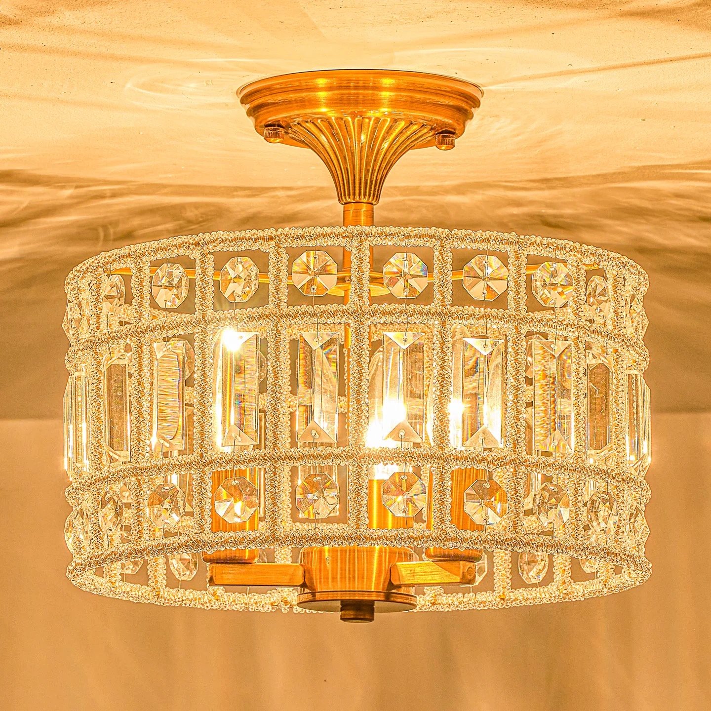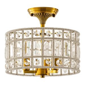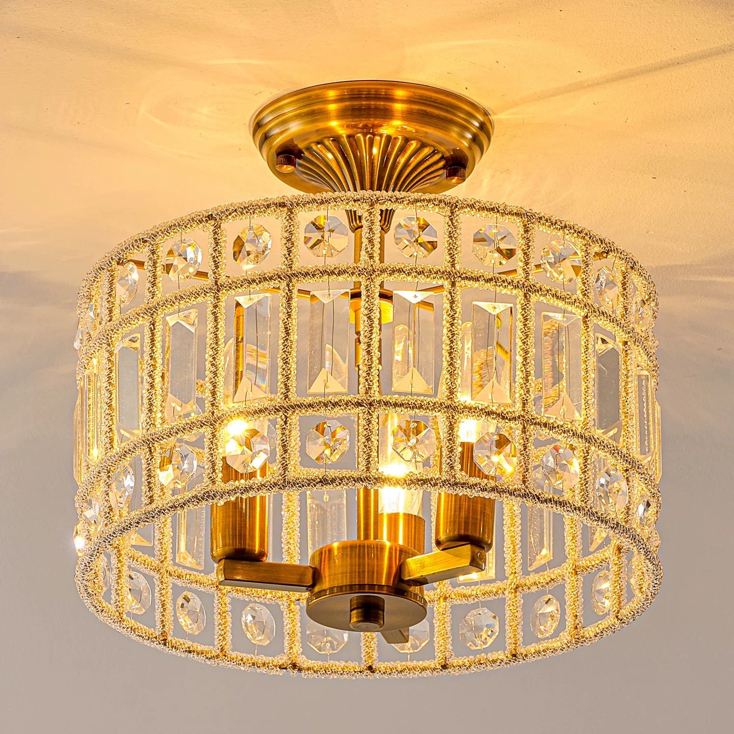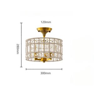 Featuring a vintage brass frame and shimmering clear crystals, this 30cm diameter fixture casts a warm, luxurious glow perfect for entryways, balconies, and studies. The compact design blends classic charm with modern functionality, ideal for adding a touch of glamour to compact interiors.
