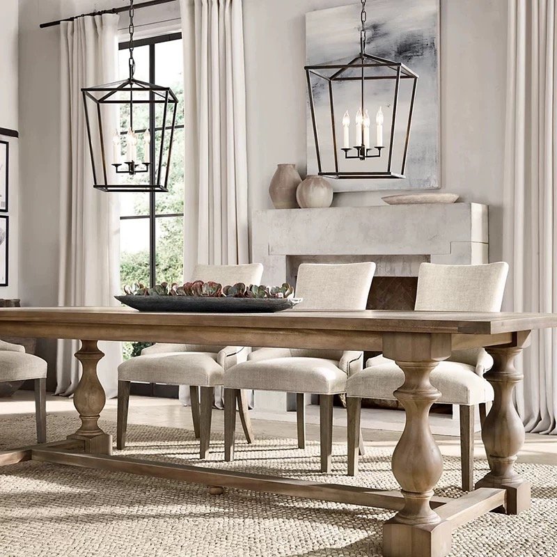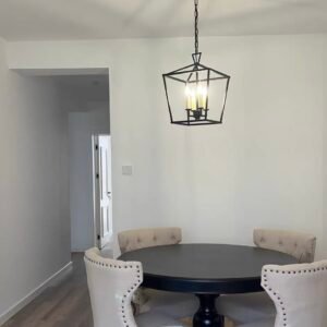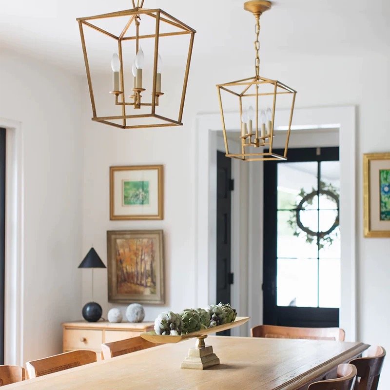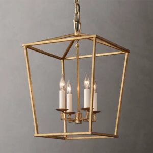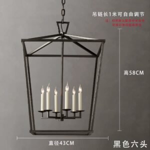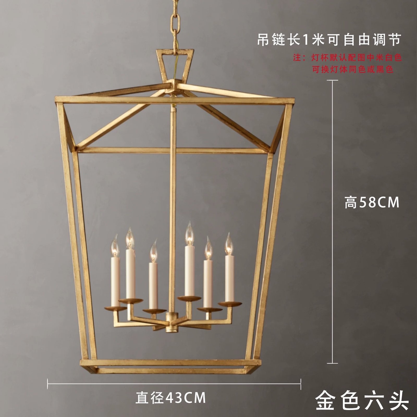 Available in antique gold, matte black, and polished silver finishes, with 4/6-light options.Inspired by classic lantern architecture, this pendant light is a timeless addition to any home. Crafted from solid iron with a hand-finished distressed texture, its clean geometric lines evoke the rustic charm of American design while remaining sleek enough for modern interiors.