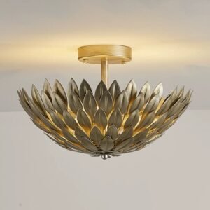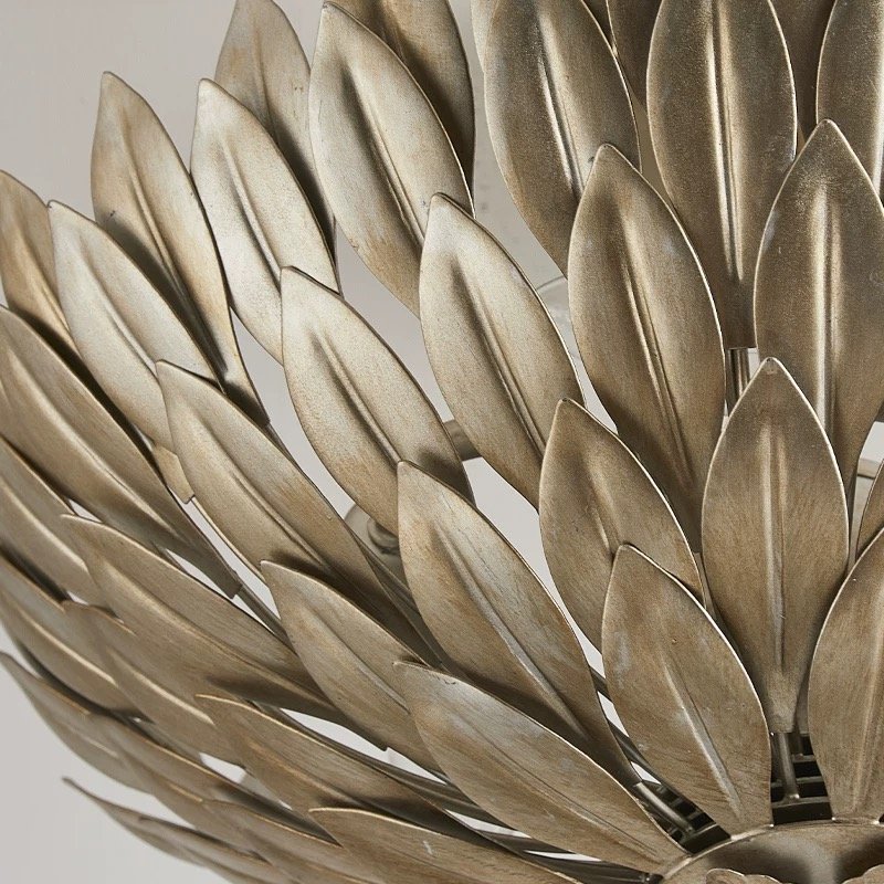 Inspired by the beauty of a blooming lotus or artichoke, this hand-forged ceiling light is a stunning fusion of nature-inspired design and classic vintage appeal. Its intricate metal leaf structure casts a warm, diffused glow, making it the ultimate statement piece for any room that needs a touch of timeless sophistication.Featuring a unique floral design and warm ambient light, it’s perfect for living rooms, bedrooms, and dining areas. Add timeless vintage charm to your home.