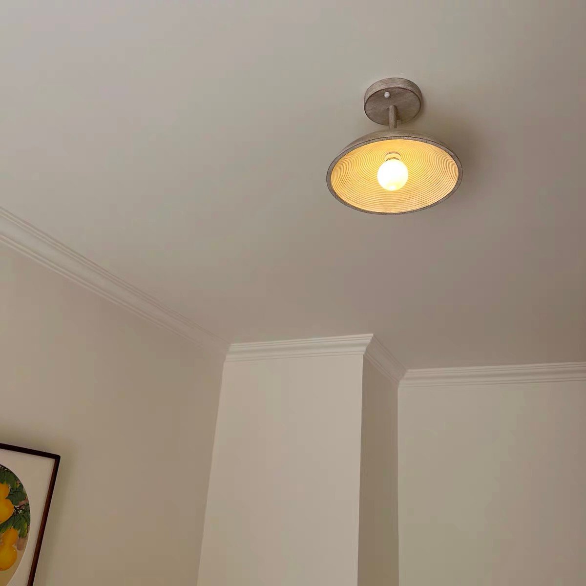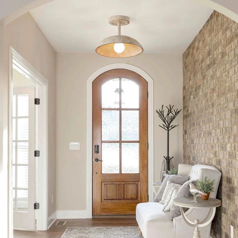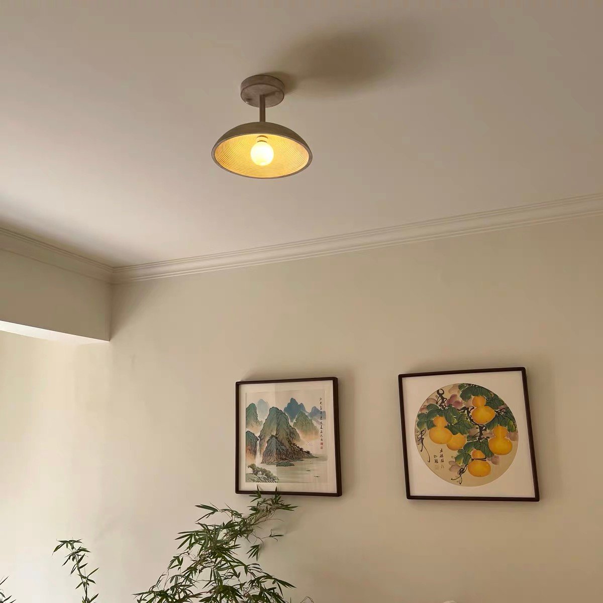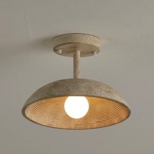 Vintage textured stone semi-flush ceiling light. Slim profile, warm ambient glow. Perfect for entryways, hallways, balconies