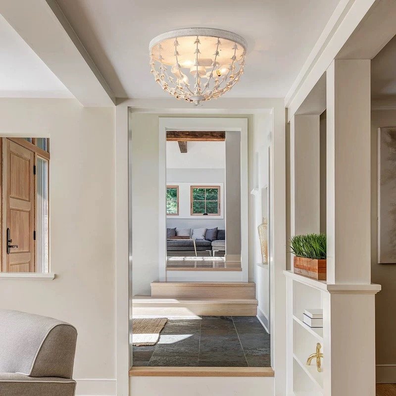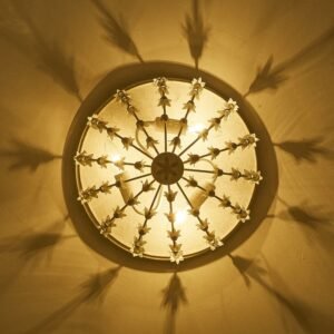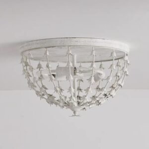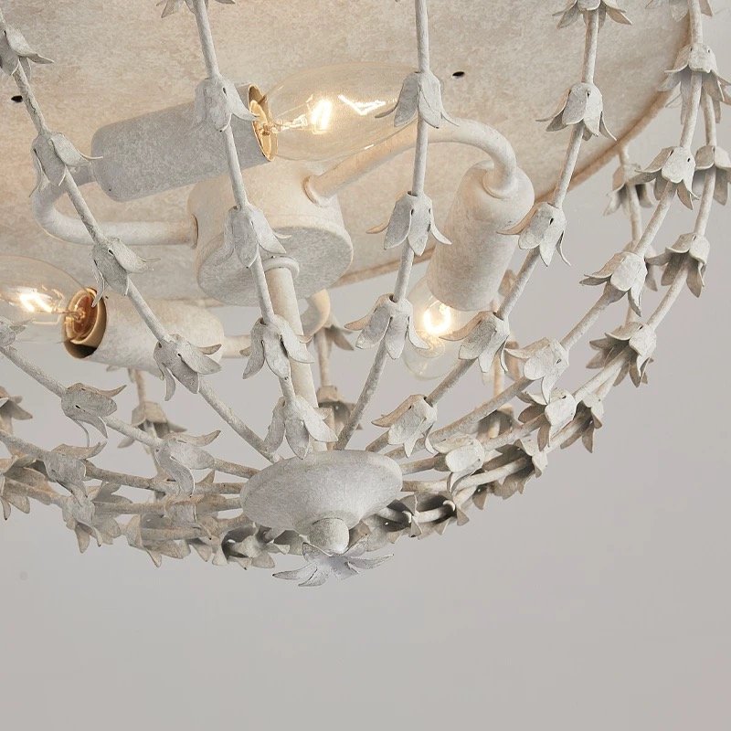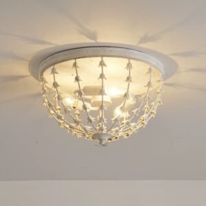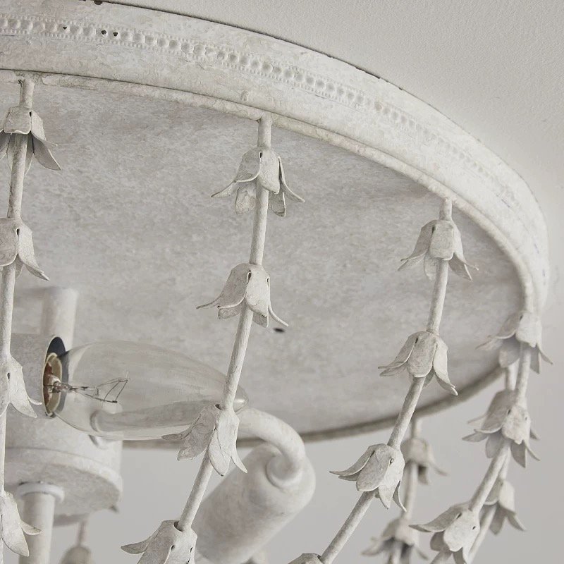 Inspired by the delicate beauty of lily of the valley flowers, this flush mount light is a love letter to classic French cottage design. Its distressed white finish and cascading floral details create a soft, romantic glow that turns any space into a cozy, elegant retreat. More than just lighting—it’s a piece of nostalgic art. Adorned with delicate lily-of-the-valley details, it casts a soft, romantic glow—perfect for French cottage bedrooms, hallways, and living rooms.