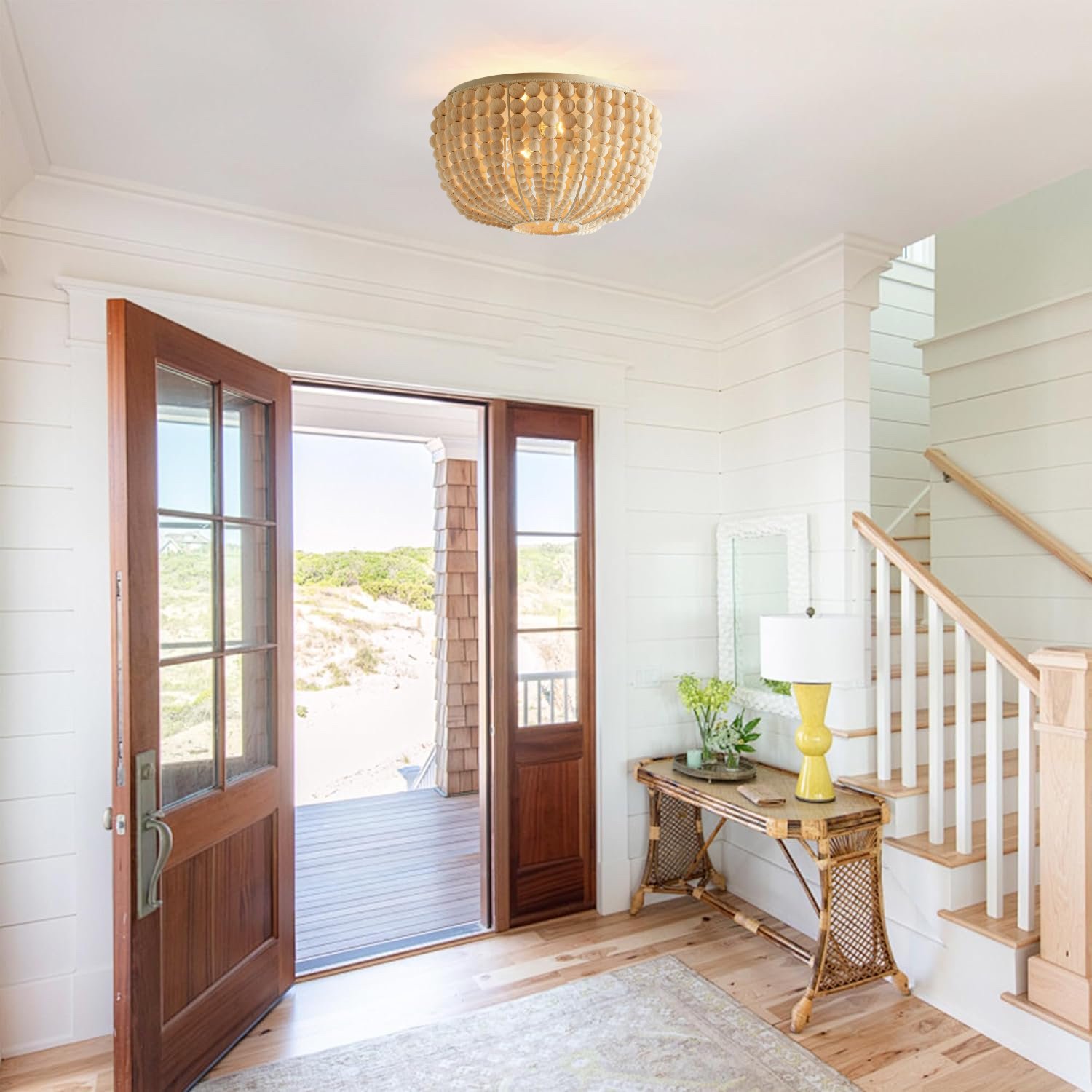 Wooden Beaded Flush Mount Light | Entryway & Hallway Ceiling Light