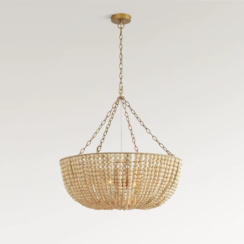 Vintage Wooden Bead Chandelier | Boho Rustic Pendant Light in White & Natural Wood